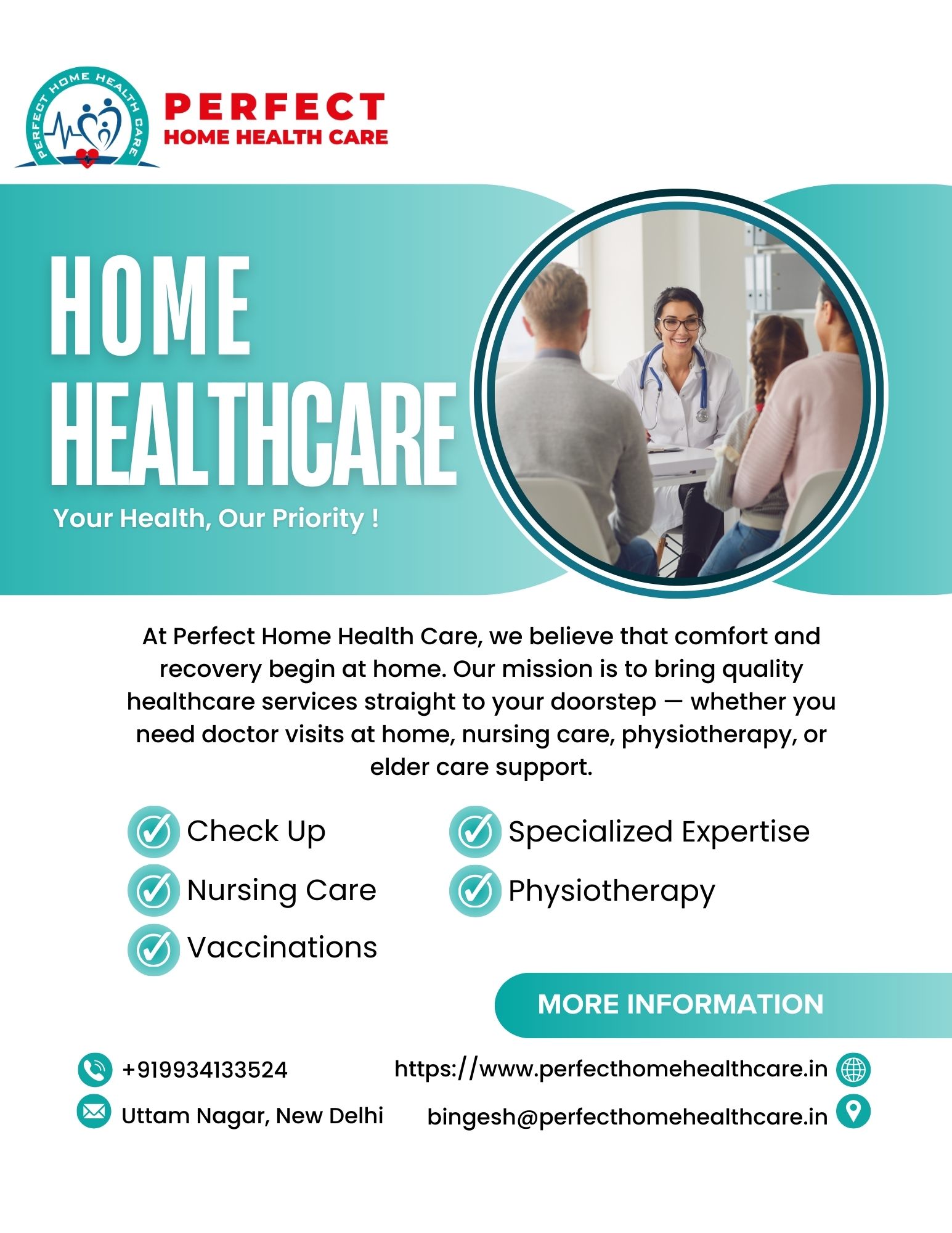 Perfect Home Health Care Pvt. Ltd. offers professional and compassionate home healthcare services, including doctor visits, nursing care, physiotherapy, and ICU setup. Providing quality care in the comfort of your home across India.